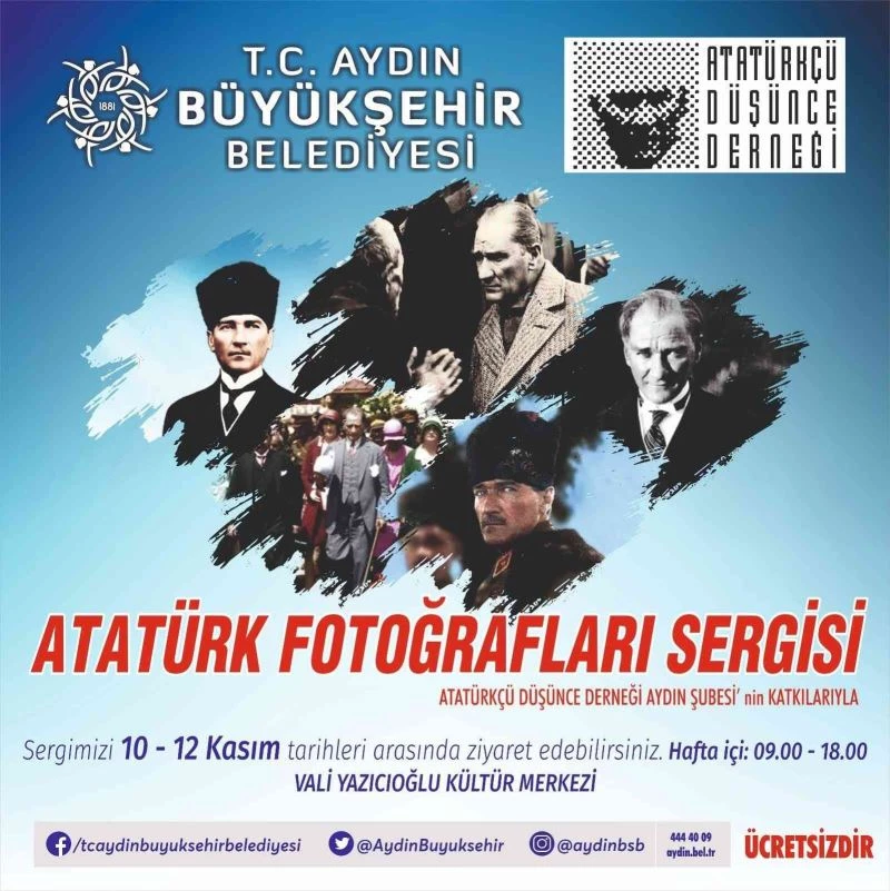 Ülke genelinde olduğu gibi Aydın’da da, 10 Kasım Atatürk’ü Anma Günü etkinlikleri kapsamında fotoğraf sergisi düzenlenecek. Aydın Büyükşehir Belediyesi tarafından gerçekleştirilecek olan sergide Atatürk’ün fotoğrafları yer alacak. Vali Yazıcıoğlu Kültür Merkezi’nde düzenlenecek olana Atatürk Fotoğrafları Sergisi, 10-12 Kasım tarihleri arasında vatandaşların ziyaretine açık olacak.