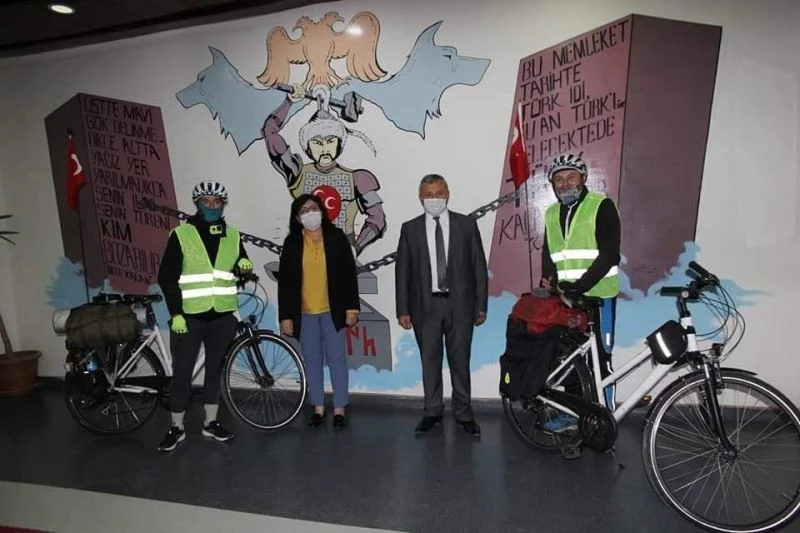 Atatürk’e saygı için Samsun’dan yola çıkan iki bisikletli, Çorum’un Sungurlu ilçesine ulaştı.