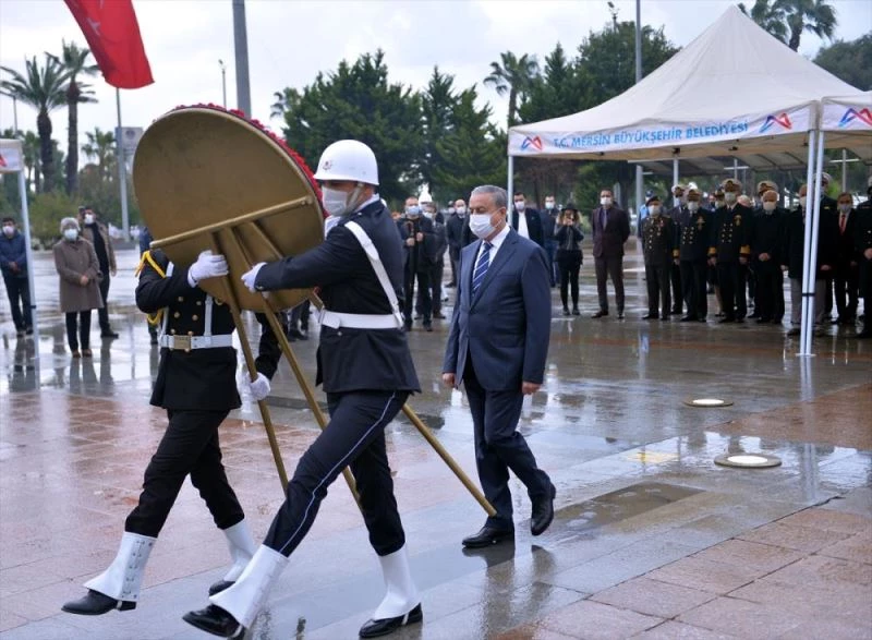 Vali Ali İhsan Su, Deniz Kuvvetleri Akdeniz Bölge ve Garnizon Komutanı Tuğamiral Fuat Gedik ve Büyükşehir Belediye Başkanı Vahap Seçer, alandaki Atatürk Anıtı'na çelenk bıraktı.