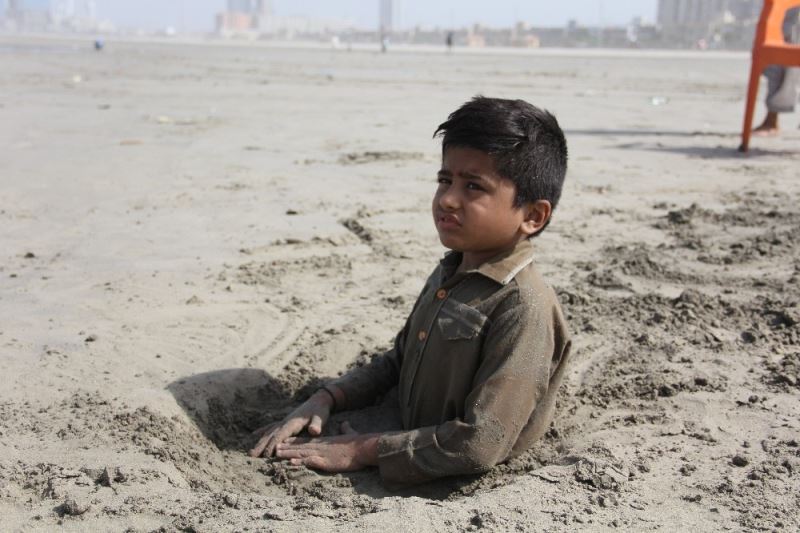 Pakistan’da ’Ateş Çemberi’ Güneş tutulması sırasında bazı Pakistanlılar şifa bulması inancıyla engelli çocuklarını kuma gömdü.