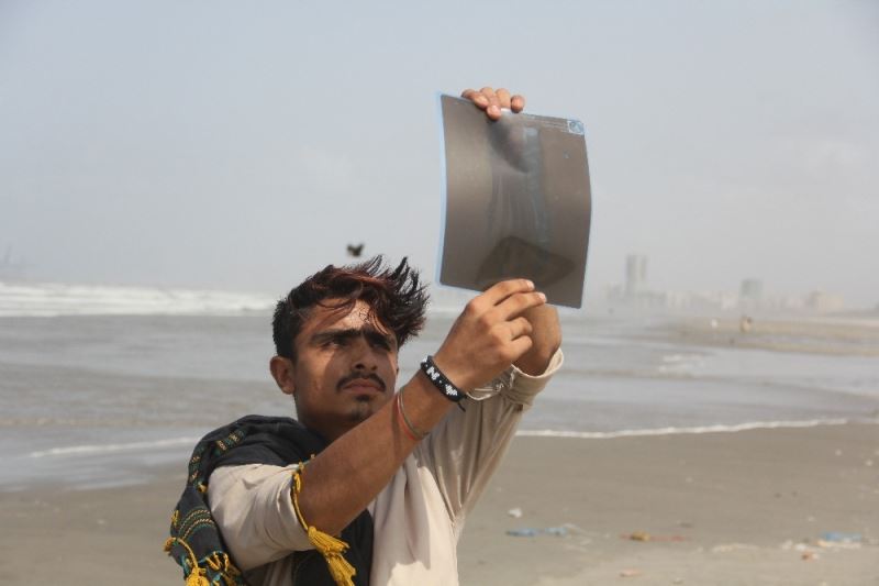 Ay’ın Güneş’i tam kapatamayarak etrafında bir ateş çemberi oluşturduğu halkalı güneş tutulması Pakistan’da da gözlemlendi. Karaçi kentinde güneş tutulmasını izleyen bazı aileler, engelli çocuklarını şifa bulması inancıyla sahilde kuma gömdü.