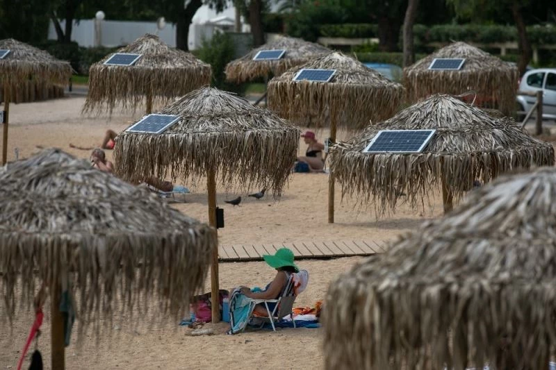 Yunanistan’ın başkenti Atina yakınlarındaki plajlarda güneş enerjili telefon şarj sistemleri şemsiyelerin üzerine yerleştirildi. Güneş enerjili telefon şarj eden şemsiyelere ise ilgi büyük.