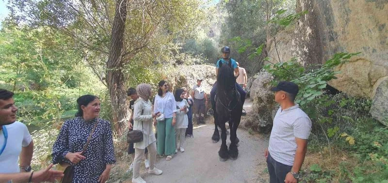 Kapadokya’ya açılan kapı Aksaray’da dünyanın en büyük kanyonları arasında yer alan ve her yıl binlerce yerli ve yabancı turistin ziyaret ettiği Ihlara Vadisinde güvenlik Atlı Jandarma Timi tarafından sağlanıyor.