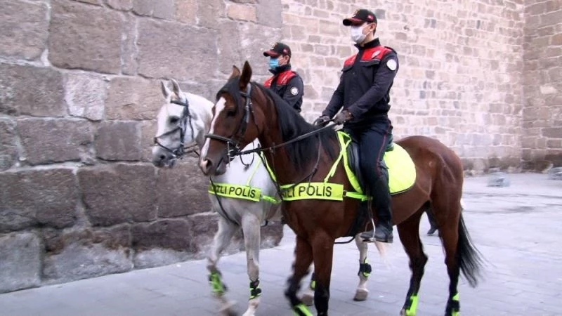 Kayseri’de korona virüs ile mücadele kapsamında atlı polis birlikleri ile sigara ve maske denetimi yapıldı.