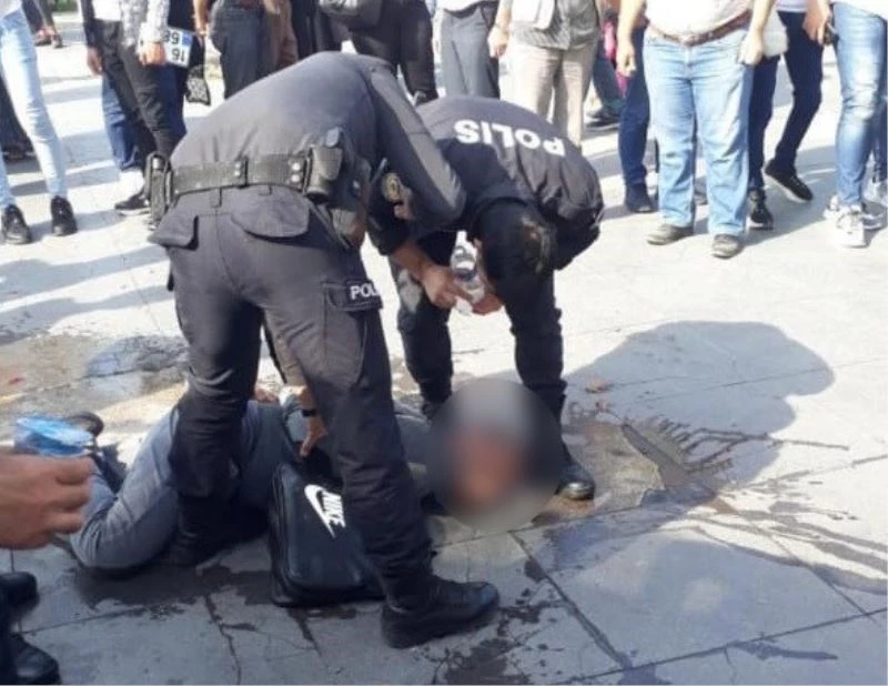 Olay, Kent Meydanı AVM önünde meydana geldi. İddiaya göre, ATM’den para çekmeye çalışan N.A.’nın yanına gelen bir şahıs, çektiği 2 bin lirayı almaya çalıştı. Bu sırada kadın yardım çığlığı atınca orada devriye gezen polis ekipleri müdahale etti. Polise kafa atan U.I. daha sonra kaçmaya çalıştı. Diğer polis ekiplerinin de gelmesiyle birlikte etkisiz hale getirilen zanlı ters kelepçe yapılarak gözaltına alındı. Olayın ardından dudağı patlayan polis memuru ambulansla Çekirge Devlet Hastanesine kaldırıldı. Polis memurunu yaralayan adam ise emniyete götürüldü.