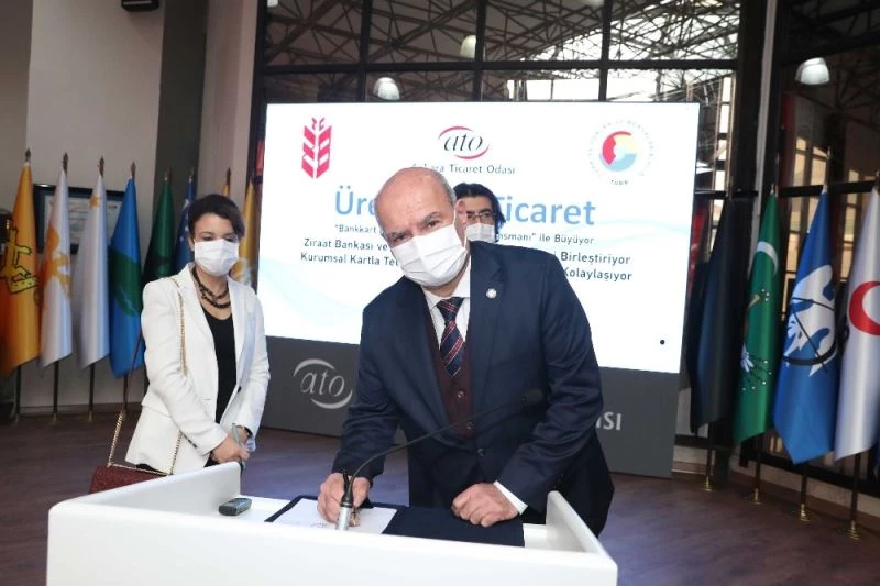 ATO üyesi işletmelerin tahsilat riski düşünmeden alım-satım yapabilmelerine imkân sağlamak üzere Ziraat Bankası ile Ankara’da uygulanması için geçerli olacak protokol, ATO Yönetim Kurulu Başkanı Gürsel Baran ile Ziraat Bankası Genel Müdür Yardımcısı Alpaslan Çakar ve Ziraat Bankası Ankara 2. Bölge Yöneticisi Burcu Kurgun tarafından imzalandı. ATO Hizmet Binası’nda gerçekleşen imza töreninde açıklamada bulunan Baran, Bankkart Başak Tedarik Zinciri Finansmanı Projesi ile pandemi nedeniyle zor günler yaşayan ATO üyelerinin rahatlayacağını belirtti. Baran, "Her sıkıntı bir imtihan vesilesidir. Biz, milletimizin, devletimizin, ülkemizin büyüklüğünü bu dönemde de gördük. Bu süreçte yükü omuzlayan en önemli unsurlardan biri bu ülkenin kamu bankaları oldu” ifadelerini kullandı.