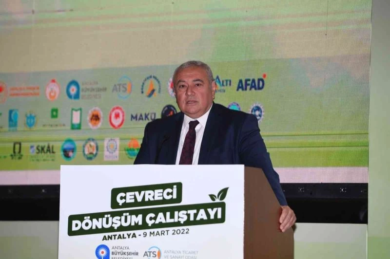 “Antalya Çevreci Dönüşüm Çalıştayı”nda konuşan ATSO Başkanı Davut Çetin, Antalya ticaretinde akıllı ve dijital dönüşümle, akıllı lojistik gibi hamlelerle katma değeri yükseltmeliyiz. İnşaat sektörümüzün hedefi akıllı kent dönüşümü ve akıllı binalar olmalıdır. Çevre bizim ekmek teknemizdir" dedi.