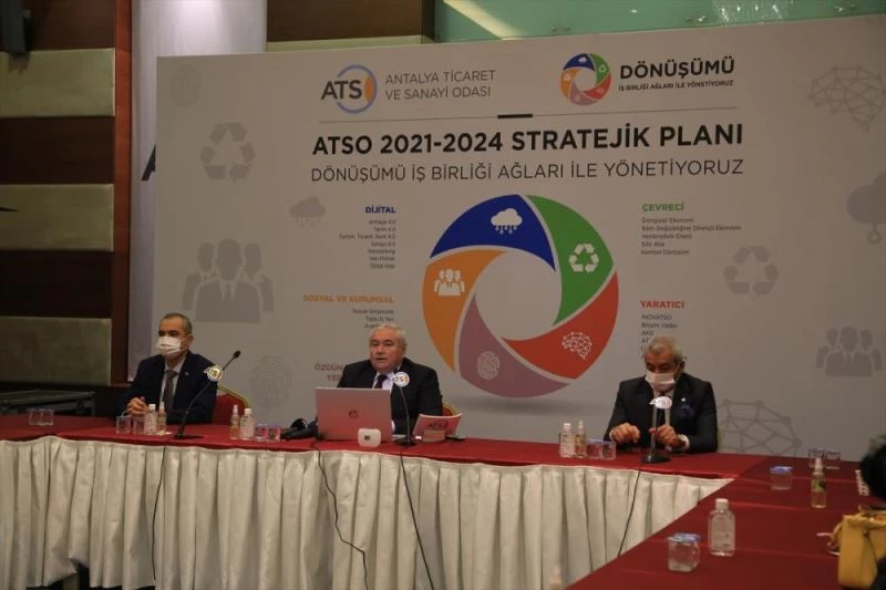 Çetin, ATSO Konferans Salonu'nda "Dönüşümü İş Birliği Ağlarıyla Yönetiyoruz" sloganıyla düzenlediği basın toplantısında, Odanın "2021-2024 Stratejik Planı"nı açıkladı.