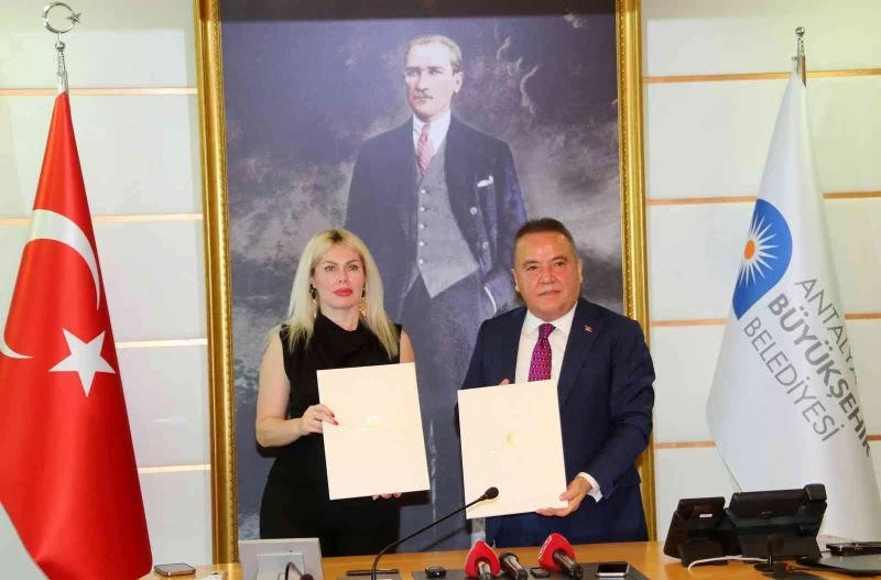 Akdeniz Üniversitesi Rektörü Prof. Dr. Özlenen Özkan ile Antalya Büyükşehir Belediye Başkanı Muhittin Böcek, Atıktan Sanata Heykel Yapımı ve Yanan Ağaçların Sesiyiz projeleri için iş birliği protokolü imzaladı.