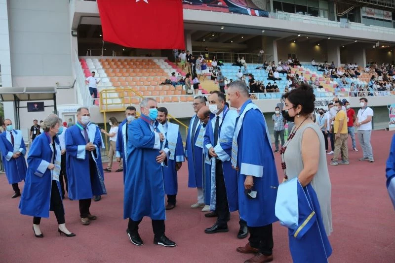 Akdeniz Üniversitesi Rektör Yardımcısı ve Rektör Vekili Prof. Dr. Murat Turhan konuşmasında törene katılanları maske ve mesafe konusunda uyardı. Prof. Dr. Turhan, “Sağlık sektöründen başlayarak öğrencilerimizin hepsi ve aileleri herkes çok büyük zorluklar çekti. Yüz yılda bir rastlanan bu durum bizim gücümüzle atlatılacak. Sayın rektörümüz Prof. Dr. Özlenen Özkan da bu tabloyu görebilmek için günlerce çalıştı, bizimle günlerce toplantı yaptı. Ama bugün Sayın Cumhurbaşkanımızın başkanlığındaki bir toplantıda Ankara’da olması gerekti” şeklinde konuştu.
