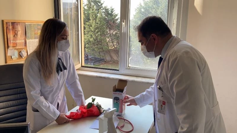Avcılar Murat Kölük Devlet Hastanesi Başhekimi İbrahim Ulusoy, 14 Mart Tıp Bayramı münasebetiyle hastane personeline karanfil ve termos dağıttı. Ulusoy, "Son bir yıldır tüm dünyayı etkileyen pandemi, belki de en çok sağlık çalışanlarını etkiledi. Gece gündüz demeden 24 saat çalışan sağlık çalışanlarına çok şey borçluyuz. Korkusuzca hastalığın üzerine giden, pandemiyle savaşan tüm sağlık personelimizin Tıp Bayramı kutlu olsun. Bugün hastanemizde bulunan tüm sağlık çalışanlarımızı çiçekle karşıladım. Onlara kendim yazdığım bir mektup takdim ettim. Ayrıca çaylarını kahvelerini sıcak sıcak içebilsin diye termos hediye etmek istedim. Yaptıkları fedakarlıklar hiçbir şekilde ödenmez ancak naçizane böyle bir şey yapmak istedim" dedi.