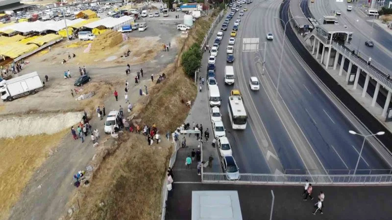 Avcılar E-5 yan yol üzerinde bulunan kesimhane ve kurban satış alanı nedeniyle trafik yine durdu. Oluşan yoğunluk dron ile havadan görüntülendi.