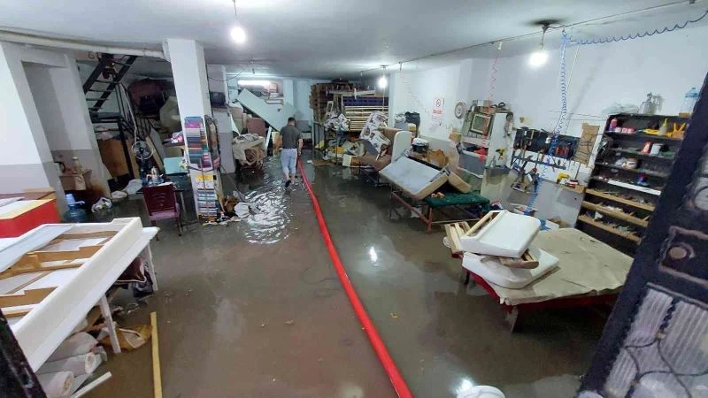 İş yeri su basan koltuk imalatçısı Aydın Şahin, “Yağmur yağınca doğal afet maalesef bizi de vurdu. Koltuk imalatı yapıyoruz, burada ciddi hasarlarımız oldu. Tuvaletin rögarından yaklaşık 50-60 santimetre bir su baskın oldu. Şuan itfaiye yardımıyla birlikte suyu tahliye ediyoruz. Komple su bastı, maalesef 60-70 bin TL’lik hasarımız var” diye konuştu.