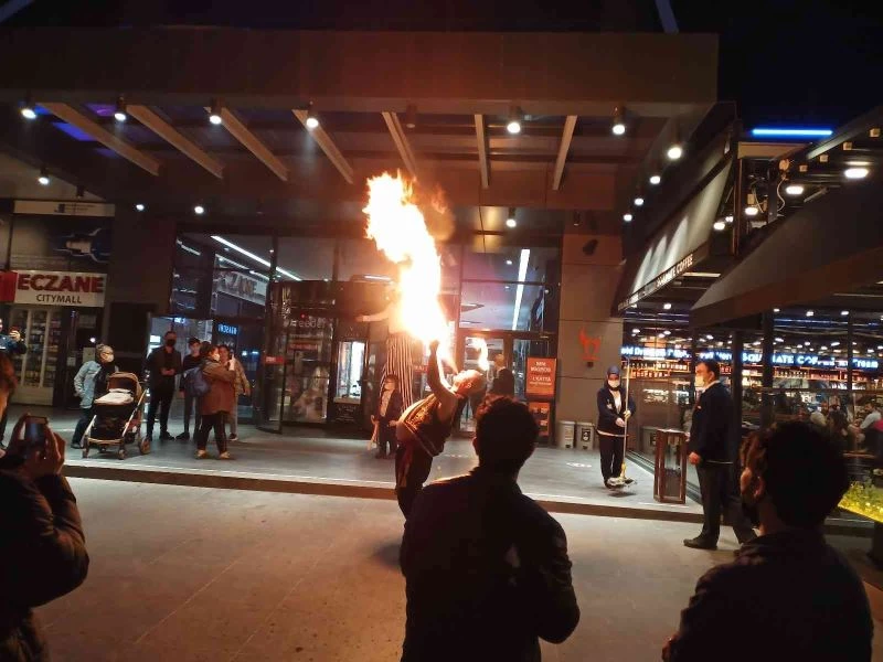 AVM önünde yapılan ateş şovu da gecenin karanlığını aydınlattı. Gösteri yapan Altan Yücebaş’ın ağzından alevler çıkarttığı anlar herkesi hayran bıraktı. Vatandaşlar eğlenceli zaman geçirdi.