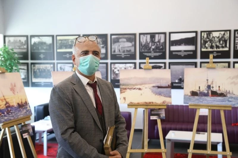 Calap “İki yıl önce Londra Üniversitesi’nin hemen karşısında bir kitapçıda bir esere rastladım.1915 basımı, Norman Wilkinson’ın The Dardanelles adlı kitabı idi. Bizim için çok önemli bir kaynak olduğunu düşünerek satın aldım. İlk önce çok şaşırdım, bu kadar değerli bir kaynak nasıl buraya bırakılmış dedim. Çanakkale Savaşına doğrudan katılmış ve gördüklerini sulu boya ile tuvaline işlemiş bir kişinin eseriydi. Aynı zamanda ressamın kitap da kendi yorumları da var, bunlarda çok önemliydi. İngiliz donanmasında Savaşa katılan başka ressamlar da vardı ama bu ressamların bazıları ölmüş bazıları savaşta bizzat cephede bulunduğu için resim yapmaya fırsat bulamamıştır. Ressam bizzat donanma komutanının bulunduğu gemide bulunmuş ve bazı dönemler de de karaya çıkmış. Eserde yer alan en önemli not ise kadınlarımızın savaşta üstlendiği roldür. Çokta bilmediğimiz bir konuydu bu. Mesela yazar Türk kadınlarının sızma harekatları yaptığını söylüyor ve bunu şaşkınlıkla seyrettiği yazıyor. Bu Türk kadınları için çok gurur verici bir olaydır. Birde biz Türkleri farklı bilirdik, Türkler Kızılhaç’ın sahile kurduğu çadırlara hiç saldırmadılar. İsteselerdi ellerinde kimyasal silahlarda vardı, burada kullanabilirlerdi ama kullanmadılar. Yaralıların taşınmasına her zaman izin verdiler diyor. Bu değerli eserin bu özel günde içinde yer alan 30 adet sulu boya çalışmasını kamuoyu ile paylaşmak istedim. Pandemi tedbirleri kapsamında sadece akademisyen arkadaşları davet ettik ama ilerleyen haftalarda, aylarda pandemi şartları değişirse halka açık bir hale getirmeyi düşünüyoruz” dedi.