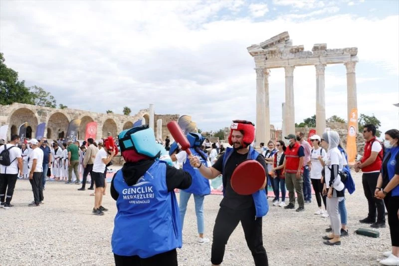 Side Antik Kenti Apollon Tapınağı'ndaki törende sporcuların gösterileri, bölgeyi ziyaret eden yerli ve yabancı turistler tarafından ilgiyle izlendi. "Flyboard" gösterisinin büyük beğeni topladığı etkinlikte, jandarma köpeği "Lodos"un voleybol oyuncularıyla top mücadelesi dikkati çekti.
