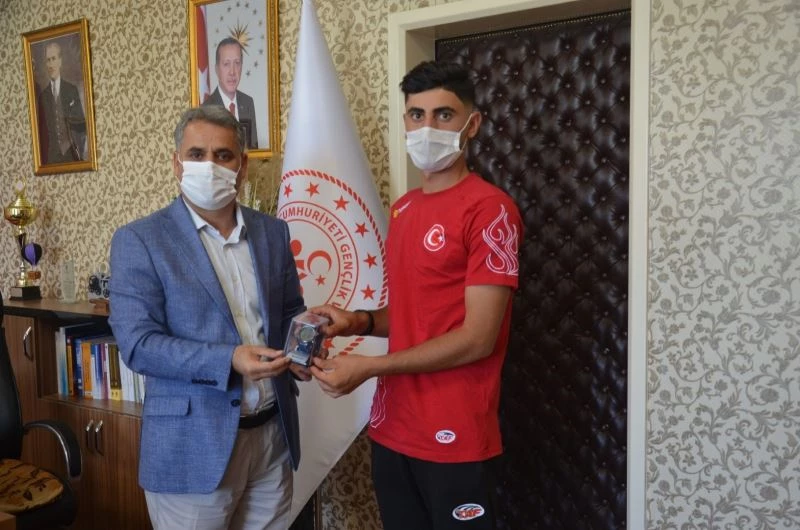 Çekya Podebrady’da yapılan Avrupa Yürüyüş Kupası’nda U20 kategorisi 10 kilometre yarışında 42 dakika 20 saniyelik derecesiyle Avrupa üçüncüsü olan sporcu Serhat Güngör’e hediye yağıyor. Avrupa üçüncüsü olan sporcu Serhat Güngör’ü kabul eden Malatya Gençlik ve Spor İl Müdürü Ebu Bekir Kayhan, Serhat Güngör’ü tebrik ederek hediye verdi.