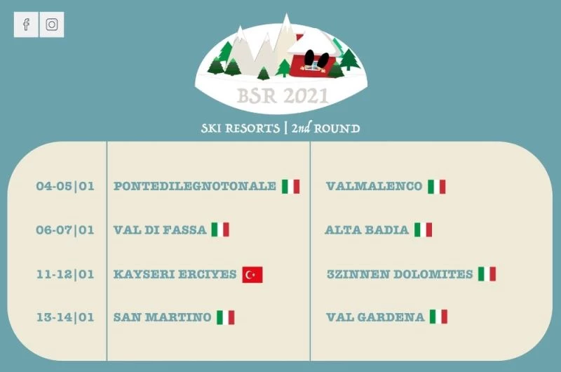 İlk raundda İtalya’daki kayak merkezi Alpe Lusia’yı eleyerek ikinci raunda geçen Erciyes Kayak Merkezi şimdi de İtalya’daki diğer bir kayak merkezi olan Zinnen Dolomites ile 11 ve 12 Ocak’ta karşılaşacak. Go4ski.com’un Facebook ve Instagram hesapları üzerinden gerçekleşecek oylama iki gün sürecek.