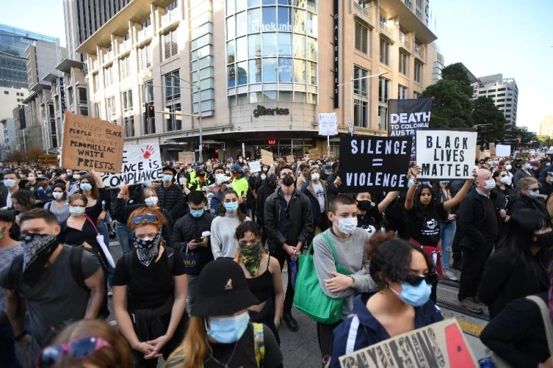 Avustralya’nın başkenti Sydney’de binlerce kişi, ABD’de siyahi George Floyd’un polis şiddeti sonucu hayatını kaybetmesini protesto etti.