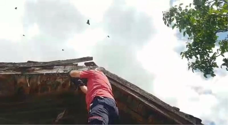 Olay, Kocaeli’nin Gebze ilçesi Mollafenari Mahallesi’nde meydana geldi. Edinilen bilgilere göre, mahallede bulunan 2 katlı binanın çatısına yaptığı yuvada mahsur kalan kargayı gören vatandaşlar durumu 112 Acil Yardım ekiplerine bildirdi. İhbar üzerine olay yerine gelen itfaiye ekipleri kargayı kurtarmak için çalışma başlattı. Çatıya merdivenle ulaşan itfaiye eri, karganın ayağının ipe dolaştığını gördü. İtfaiye eri kargayı kurtarmak için çabalarken, diğer kargalar ise binanın etrafında uçarak ekiplere saldırmaya çalıştı. İtfaiye eri vazgeçmeden kargayı, ayağındaki ipi keserek kurtardı.