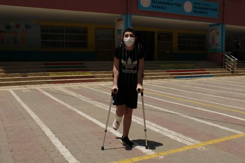 Mardin’de LGS’ye giren 8’nci sınıf öğrencisi Arda Kasar, engel tanımadı. Ayağının kırık olmasına rağmen sınava giren Arda Kasar örnek davranış sergiledi.