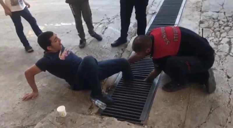 Şanlıurfa’da ayağı mazgala sıkışan genci itfaiye kurtardı.