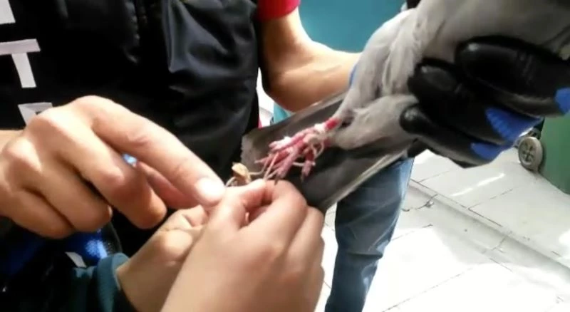Ayağına ip dolanan güvercini itfaiye ekipleri kurtardı