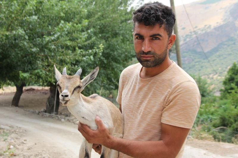 Doğada yavru yaban keçisini ölüme terk etmeyen Mahmut Baykuş, “Hayvanları otlatırken yaban keçisinin birisinin sürüden ayrıldığını fark ettim. Yanına gittiğimde ön ayaklarının üzerine basamadığını ve ayaklarının tutmadığını gördüm. Eve getirdim yiyecek ve su verdim. Doğa Koruma ve Milli Parklar Şube Şefliğine durumu bildirdim” dedi.