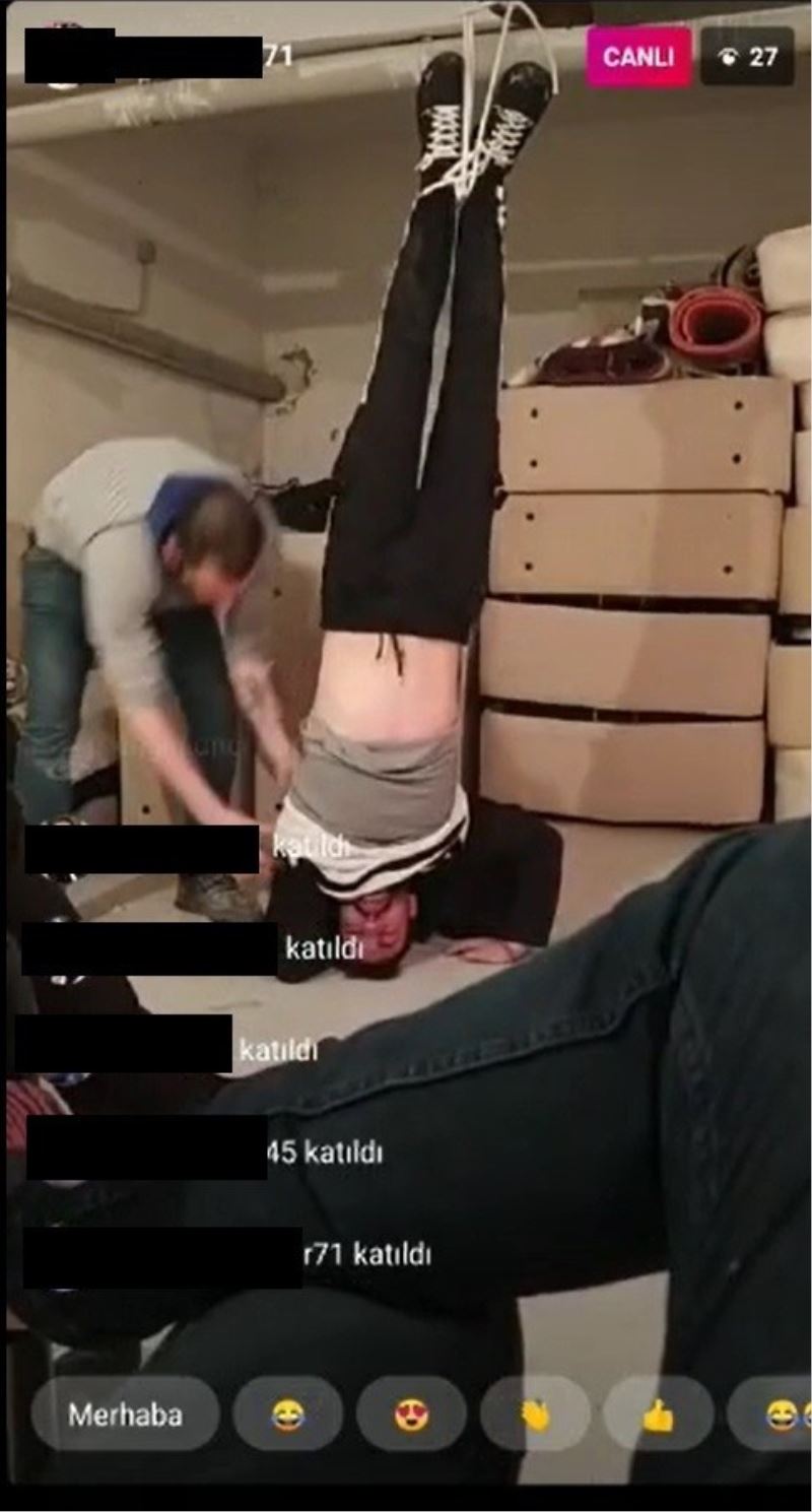 Kırıkkale’de bir apartmanın bodrum katında ayaklarından iple asılan genç adama şiddet uygulandı. O anlar ise zanlılardan birinin sosyal medya hesaplarından canlı olarak yayınlandı.