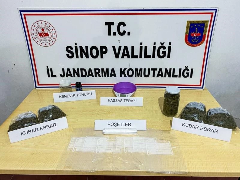 Sinop İl Jandarma Komutanlığı’nca yapılan istihbari çalışmalar neticesinde, Ayancık ilçesinde şüpheli bir şahsın ev ve eklentilerinde yapılan aramada, kubar esrar maddesi, hassas terazi, kenevir tohumu ve uyuşturucu madde paketlemede kullanılan poşet ele geçirilmiş olup, olayla ilgili bir şüpheli gözaltına alındı.