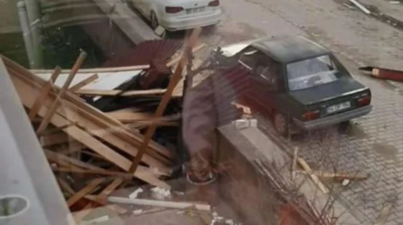 İlçede öğle saatlerinde etkisini artıran şiddetli fırtına çok sayıda apartman çatısının uçmasına neden olurken, çatı parçaları balkonlara kadar girdi.