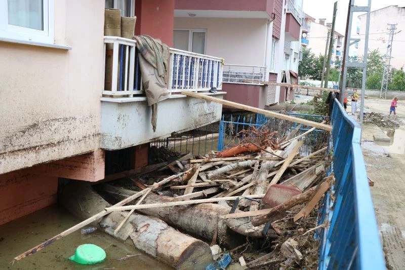 Batı Karadeniz Bölgesi’nde etkili olan sağanak yağış birçok ilde hayatı felç etti. Sinop’ta ise yağışlardan en çok etkilenen ilçe Ayancık oldu. Ayancık’ta sel suları beraberinde getirdiği tomruklarla birlikte önüne çıkan her şeyi Ayancık Çayı’na katarak sürükledi. İlçede park halinde bulunan neredeyse tüm araçlar zarar görürken, birçok ev iş yerine çamur ve tomruk doldu. Birçok binanın zemin katı su ve tomruklarla dolarken, apartmanların girişi de çamurla kaplandı. Evlerine apartmanın girişinden giremeyen vatandaşlar ise çareyi 1. katta tahtadan geçit yapmakta buldu. Apartmanda oturan vatandaşlar, üst katlardaki evlerine girip çıkmak için 1. katın balkonuna dayadıkları tahta geçidi kullandı.