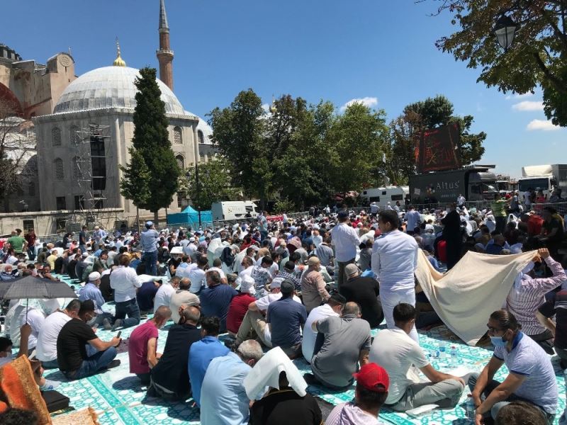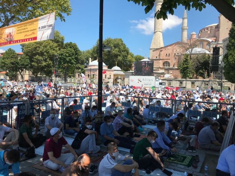 86 yıl sonra yeniden ibadete açılan Ayasofya-i Kebir Cami-i Şerifi, Kurban Bayramı’nın ilk gününde cuma namazında cemaat ile doldu. Cami içine sığmayan vatandaşlar, namazlarını cami önüne serilen hasırların üzerinde kıldı. Bazı vatandaşlar ise kendi getirdikleri seccadeleri çimlerin üzerine sererek cuma namazını kıldı. Meydanda kurulan dev ekranda cami içi ve hutbe yayını yapıldı. Vatandaşlar, meydana polis kontrolünden geçerek alındı.