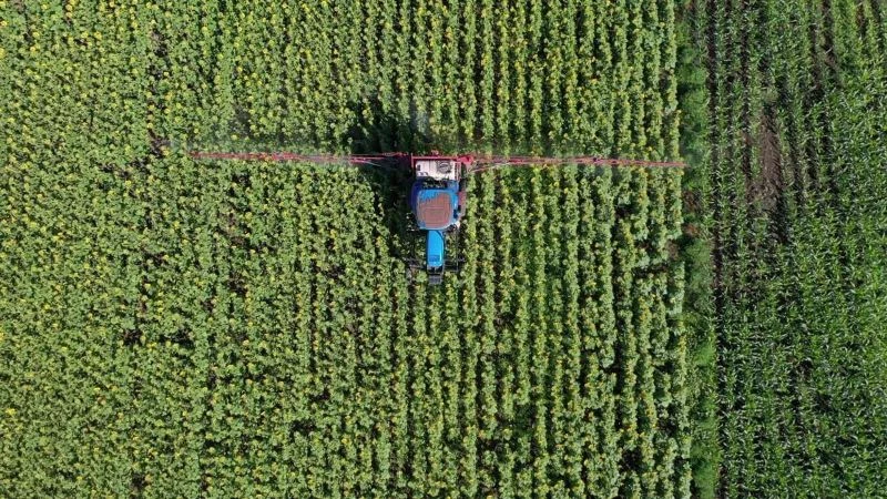 Ayçiçeği tarlaları çayır tırtılına karşı ilaçlanıyor