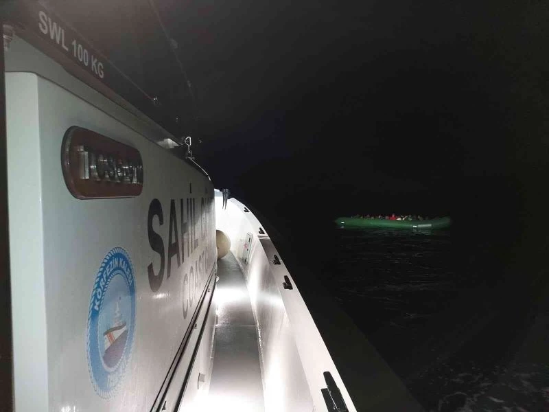 Aydın’ın Kuşadası ilçesinde lastik bot içerisinde 36 düzensiz göçmen yakalandı.