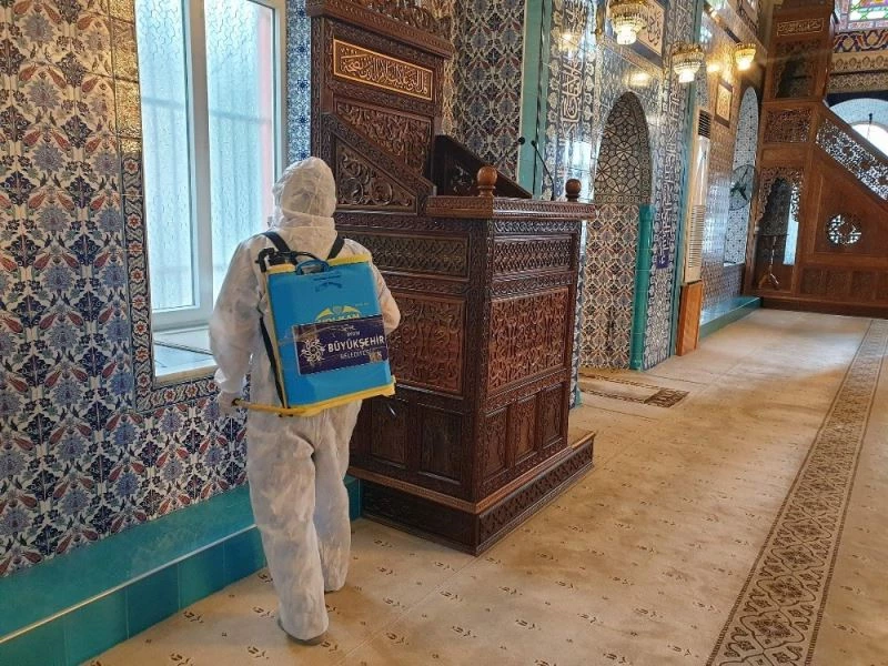 Aydın Büyükşehir Belediyesi, 29 Mayıs’ta ibadete açılacak olan ildeki tüm camilerde dezenfekte işlemi başlattı.