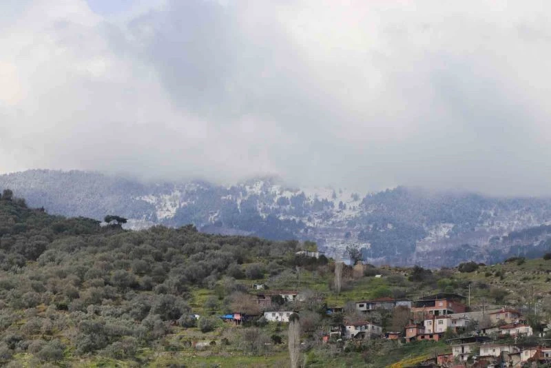 Aydın’da etkili olan soğuk ve yağışlı hava sonrası yüksek kesimlerde kar yağışı etkili oldu.