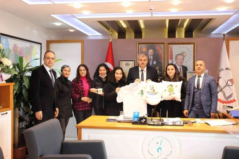 Aydın Lisesi Okul Müdürü Serkan Akyol ve projeleri başarıyla yürüten okul öğretmenleri ile öğrencileri patent tasarımlarını sunmak üzere İl Milli Eğitim Müdürü Seyfullah Okumuş’a ziyarette bulundu.