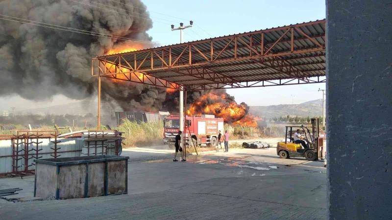 Aydın ASTİM Organize Sanayi Bölgesinde kauçuk malzemelerin tutuşması sonucu meydana gelen yangını söndürme çalışmaları devam ediyor.