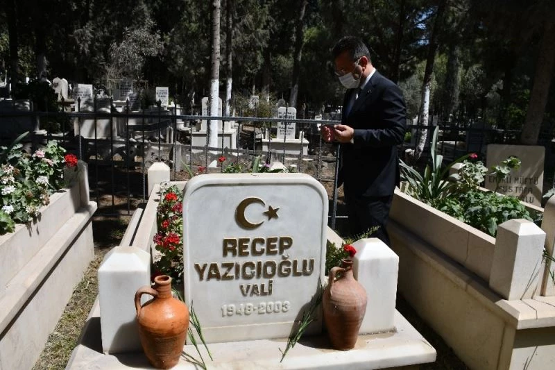 Aydın Valisi Aksoy Söke’de ilk olarak merhum Vali Yazıcıoğlu’nun mezarını ziyaret etti