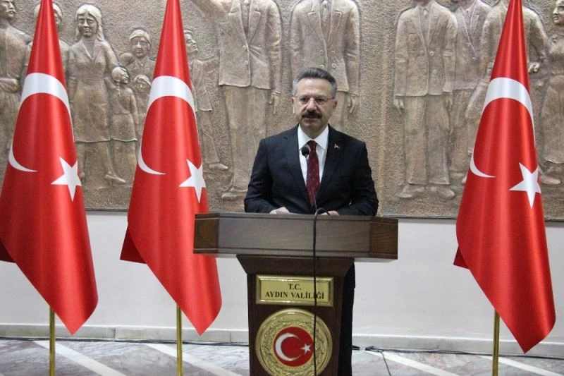 Aydın’daki sağanak yağış dolayısıyla Aydın Valiliği makam katında düzenlenen törende Aydın Valisi Hüseyin Aksoy, protokolün bayram tebriklerini kabul etti. Cumhurbaşkanı Recep Tayyip Erdoğan’ın günün anlam ve önemi dolayısıyla yayımladığı mesajın okunmasının ardından Aydın Valisi Hüseyin Aksoy yaptığı konuşmasında, “Bugün geçmişimizden aldığımız güç ile ezelden ebediyete emin adımlarla birlik ve beraberlik içerisinde yürürken, dirilişimizin sembolü olan cumhuriyetimizin kuruluşunun 97. Yılını kutlamanın coşkusunu hep birlikte yaşıyoruz. Bu anlamlı günde cumhuriyetimizin kurucusu Gazi Mustafa Kemal Atatürk ve silah arkadaşları başta olmak üzere, kanları ile bu toprakları vatan yapan aziz şehitlerimizi rahmetle, kahraman gazilerimizi de minnet ve şükranla yad ediyorum”dedi.