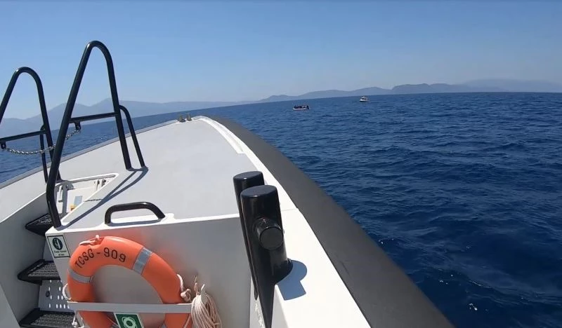 Aydın’ın Kuşadası ilçesinde lastik bot içerisinde sürüklenen 34 düzensiz göçmen kurtarıldı.