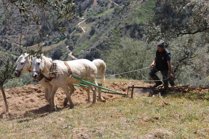 Traktörün giremediği dağlık arazilerde atlara koştuğu karasaban ile çift sürerek geçimini sağlayan Ömer Elbey, yıllardır atları ile çift sürerek ekmeğini kazandığını söyledi. Ekonomik imkansızlıklardan değil arazinin engebeli yapısından dolayı Aydın’ın incir ve zeytin üretimi yapılan dağlarını atlarla sürerek işlediklerini belirten Elbey, “Atlar artık benim birer parçam oldu. Ekmeğimi atlarla kazanıyorum. Bahar mevsiminde çift sürerek zeytin sezonunda da taşımacılık yaparak atlarla para kazanıyorum” dedi.