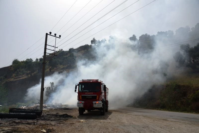 Yangın bugün saat 15.00 sıralarında Kalfaköy yolu su depoları mevkiinde meydana geldi. Edinilen bilgiye göre çöp ve molozların döküldüğü alanda henüz bilinmeyen bir nedenle yangın çıktı. Gökyüzünü kaplayan dumanları gören çevredeki vatandaşların ihbarı üzerine bölgeye Aydın Büyükşehir Belediyesi itfaiye ekipleri sevk edildi. İtfaiye ekipleri yangına müdahale ederek, alevlerin yolun üstündeki zeytinlik alana sıçramasını önledi. İtfaiye ekiplerinin yangını söndürme ve soğutma çalışmaları devam ediyor.