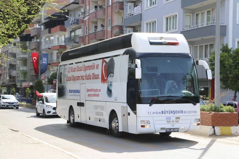 23 Nisan’a özel olarak hazırlanan otobüs ile birlikte Aydın kent genelinde sabahın ilk saatlerinde başlayan bayram coşkusu, gecenin ilerleyen saatlerine kadar sürdü.
