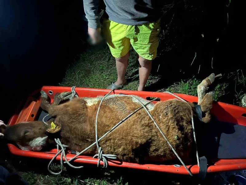 Aydın’ın Efeler ilçesinde uçuruma düşen 3 büyükbaş hayvandan biri Aydın Büyükşehir Belediyesi İtfaiye Daire Başkanlığı ekipleri tarafından kurtarılırken, 2’si telef oldu.