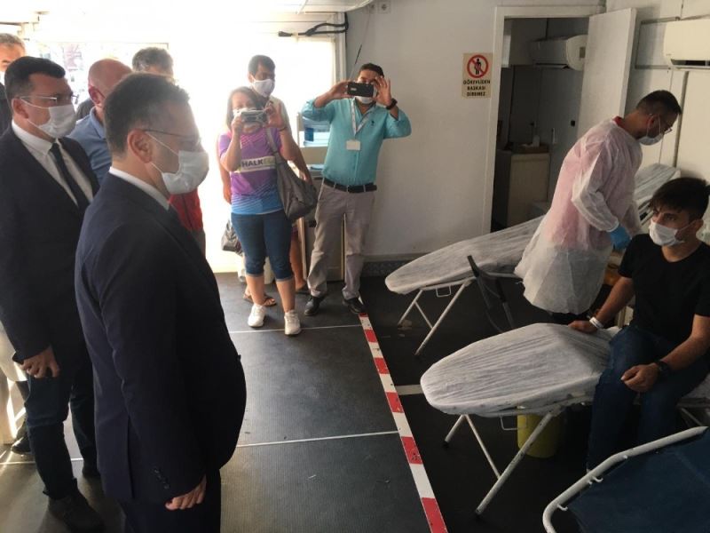 Korona virüs (Covid-19) salgınından dolayı kritik seviyeye düşen kan stokları dolayısıyla Türk Kızılay Aydın Kan Bağışı Merkezi ve Aydın Valiliği öncülüğünde kan bağışı kampanyası düzenlendi. Efeler ilçesindeki Atatürk Kent Meydanı’nda düzenlen etkinliğe Aydın Valisi Hüseyin Aksoy Efeler İlçe Kaymakamı Cemal Şahin ile birlikte katıldı. Vali Aksoy Kan Bağışı Merkezi Müdürü Dr. Rıdvan Şenol’dan gerçekleştirilen çalışmalar hakkında bilgi aldı. Kan bağışında bulunan vatandaşlarla da sohbet eden Vali Aksoy, vatandaşlara duyarlı davranışlarından dolayı teşekkür etti.