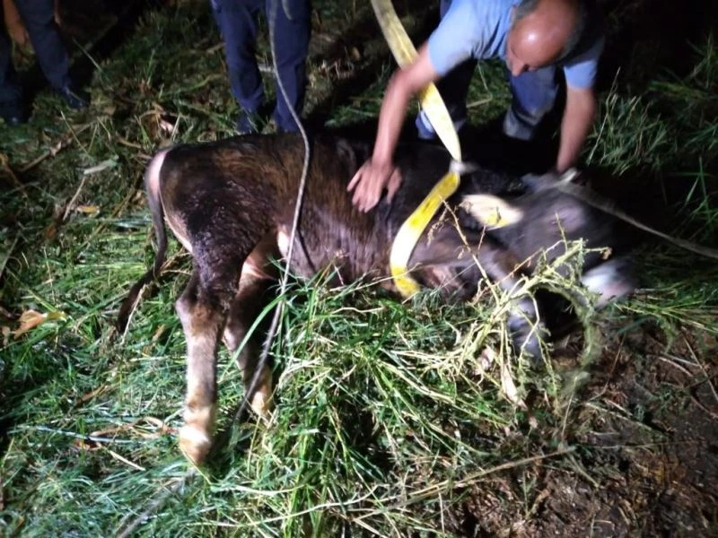 Aydın’da kuyuya düşen ineği itfaiye ekipleri kurtardı