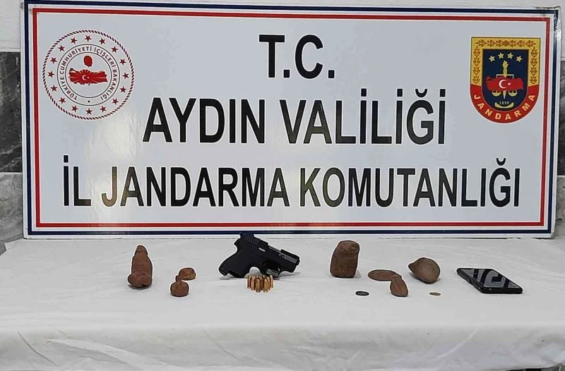 Aydın İl Jandarma Komutanlığı Kaçakçılık ve Organize Suçlarla Mücadele Şube Müdürlüğü tarafından Efeler ilçesinde tarihi eserler sakladığı tespit edilen 1 şahsın ikametine operasyon gerçekleştirildi. Arama ve yakalama faaliyeti çerçevesinde yapılan operasyonda 1 şahıs gözaltına alındı. İkamette yapılan aramada ise Mezopotamya dönemine ait olduğu tespit edilen 1 adet M.Ö. 4 binli yıllara ait Mezopotamya dönemi mührü, 6 adet M.Ö. 4 binli yıllara ait Mezopotamya dönemi kartal başı, kadın figürü, madalyon gibi eserler, 1 adet gümüş sikke, 1 adet bronz sikke, 1 adet ruhsatsız tabanca, 9 adet fişek ele geçirildi.
