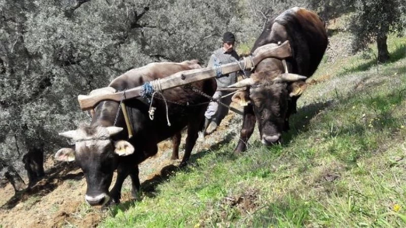 Türkiye’de en fazla incir, kestane ve zeytin üretiminin gerçekleştirildiği illerin başında gelen Aydın’ın verimli dağlarında öküzler halen değerini yitirmedi. Tarım işlerinde çiftçinin en büyük yardımcısı olan öküzler, teknoloji ile birlikte unutulmaya yüz tutan karasabanla bahçelerin işlenmesinde kullanılmaya devam ediyor.